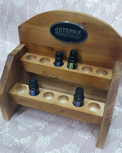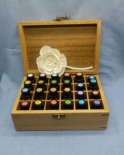 원목으로 만든 24개15ml 아로마 오일병을 보관